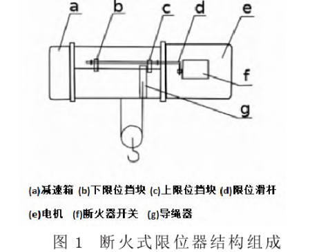 防爆鋼絲繩電動(dòng)葫蘆是易燃易爆工廠(chǎng)中常用的起重設(shè)備,它的應(yīng)用可以避免工廠(chǎng)內(nèi)在從事起重吊裝作業(yè)過(guò)程中因摩擦而產(chǎn)生火花,再進(jìn)一步避免火災(zāi)爆炸事故的發(fā)生。在鋼絲繩電動(dòng)葫蘆的零部件中,斷火式限位器又處于一個(gè)非常關(guān)鍵的位置。
